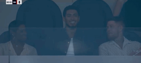第33分钟,镜头给到场边,贝林厄姆看台观战