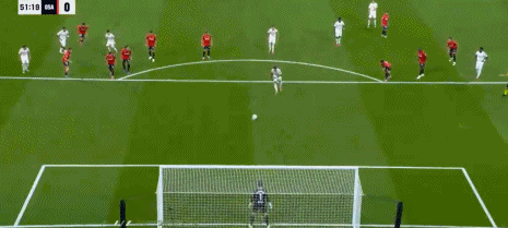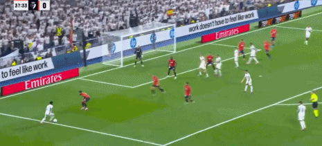 第38分钟,维尼修斯内切后射门,皮球偏得有点离谱