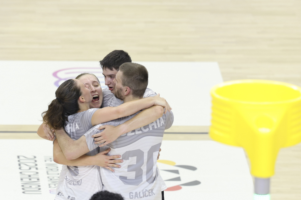 8月9日,捷克队球员庆祝胜利。新华社记者 姜克红 摄