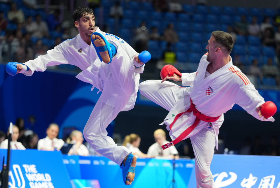 8月9日,贾法里(左)与克韦西奇在比赛中。新华社记者 江宏景 摄