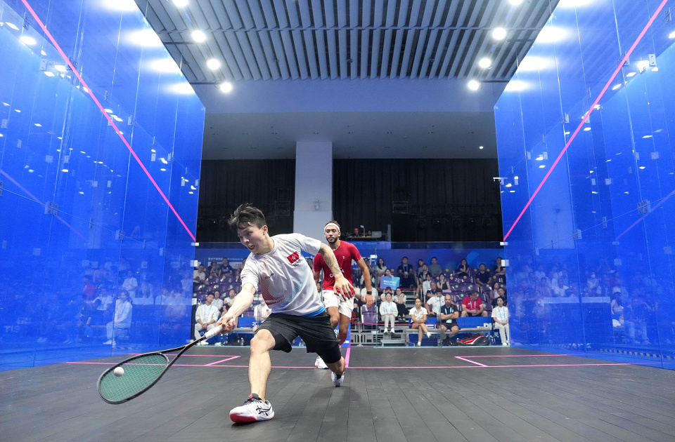 8月9日,中国香港选手刘子均(前)在比赛中回球。新华社记者 李旭伦 摄